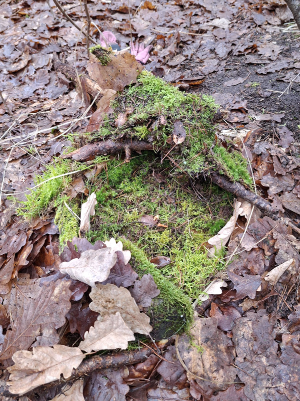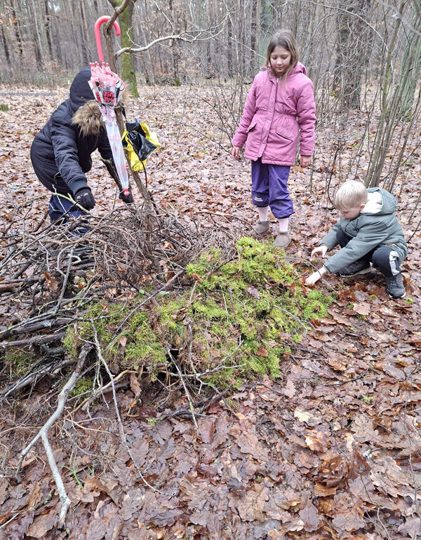 Wir haben ein Igelnest gebaut. Zusammen mit Joshua und Keno.